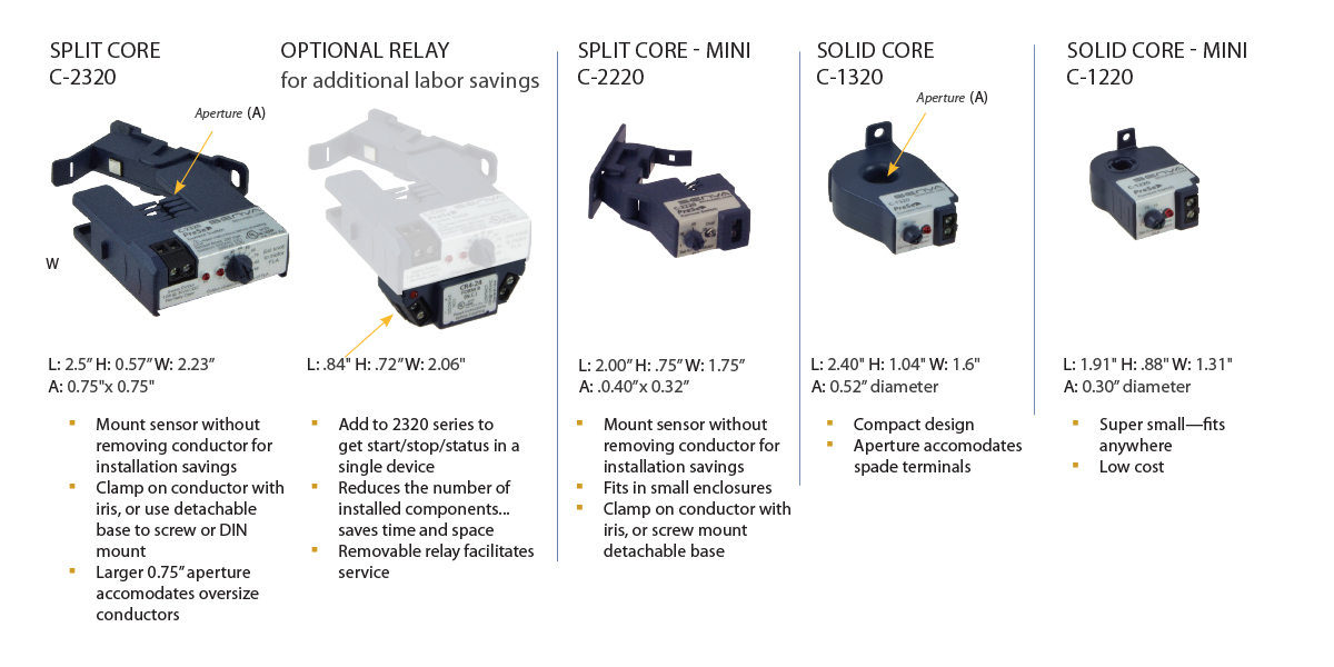 PreSet™ allows for matching sensor set-point to the motor nameplate, eliminating the need to calibrate in energized enclosures and reducing installation time. The sensor will detect motor undercurrent conditions such as belt loss, coupling shear, and mechanical failure on fans and pumps.